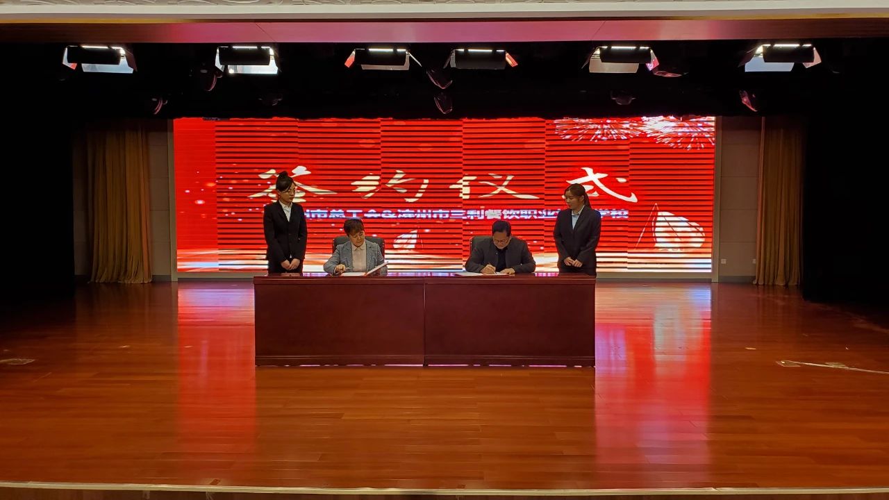 滨州市总工会命名滨州市三利餐饮职业培训学校为滨州市“职工(农民工)培训基地”签约仪式。